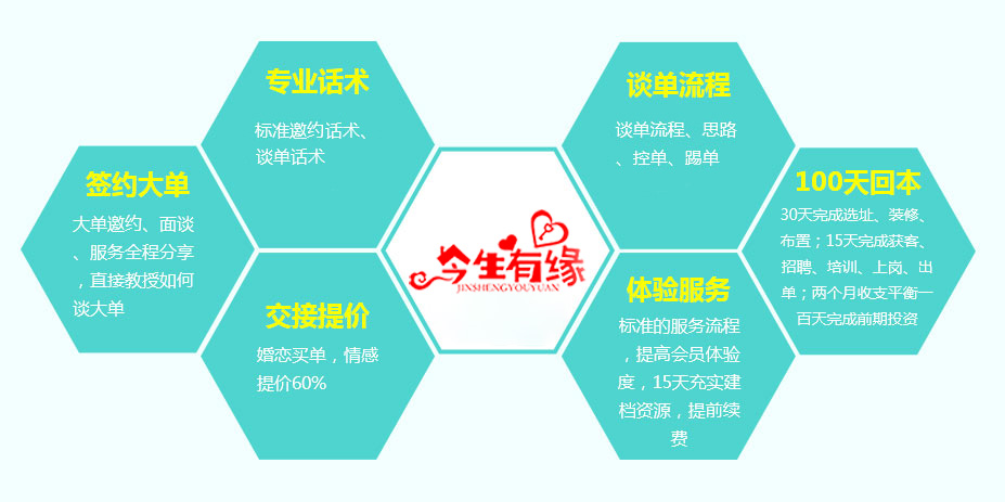 我们的文化:公司一向贯彻“开拓创新、仁爱奉献、勤奋务实”的企业精神,利用自己强大的资源,科学、系统、严格的管理体系及专业高素质的红娘团队,秉持红娘一对一服务打造当代婚恋品牌形象。全体今生有缘人一直恪守“诚信为本、感恩利他、互惠共赢”的经营理念,携手天下有志之士共同为幸福美好生活而奋斗!